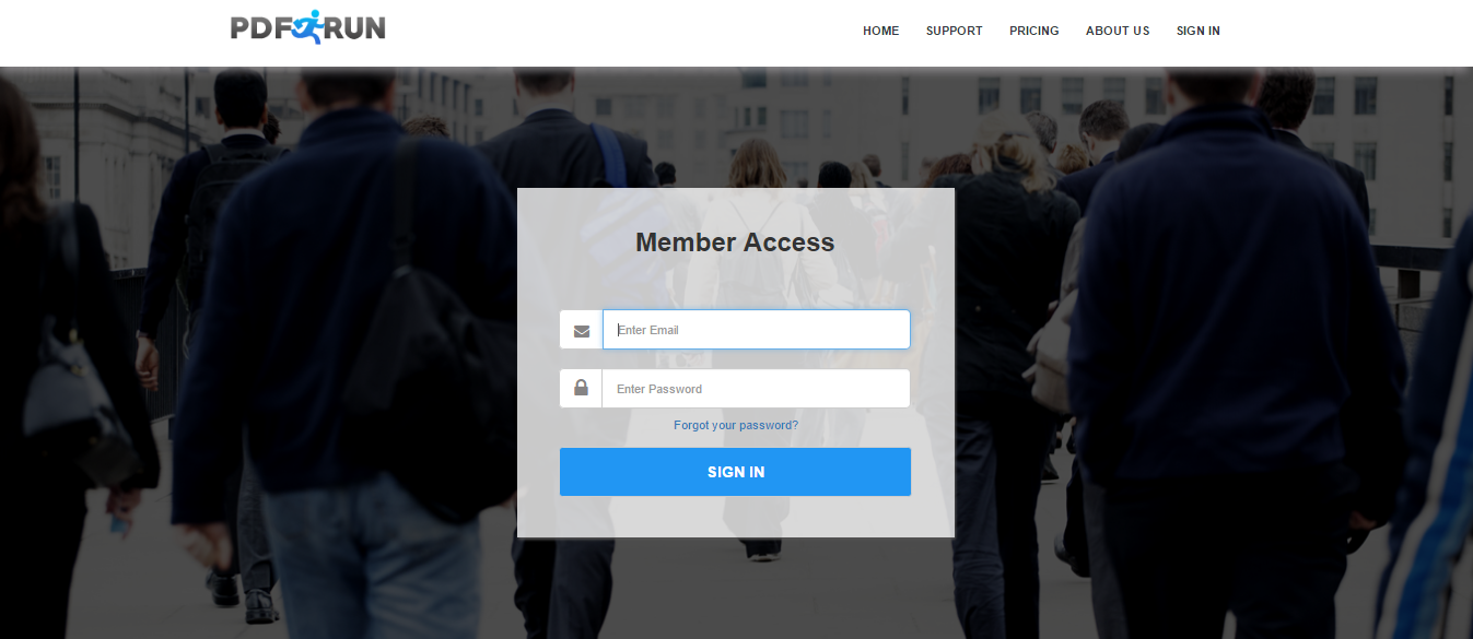 For existing users, go to https://www.pdfrun.com/authentication and follow these steps: